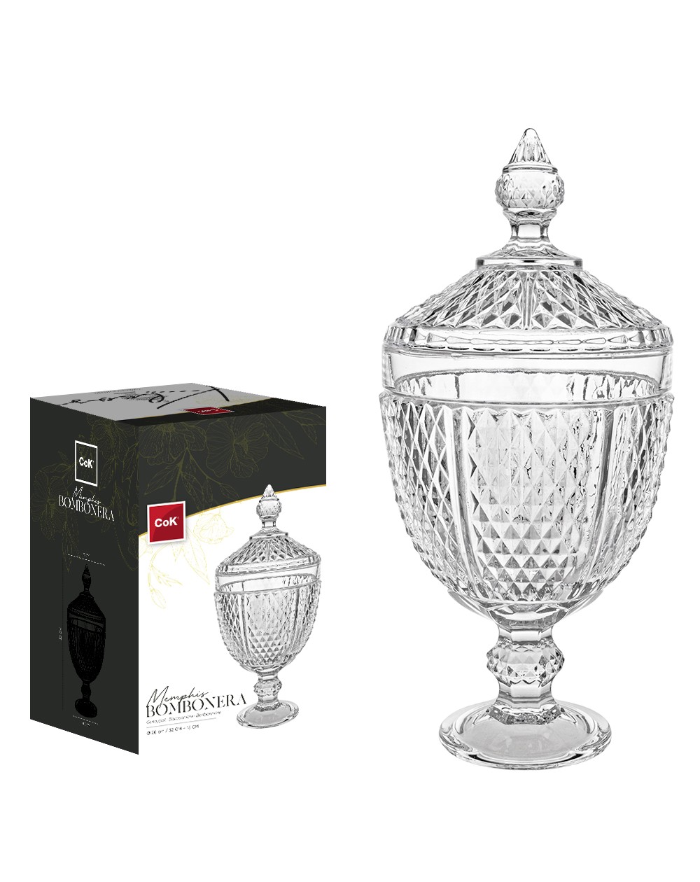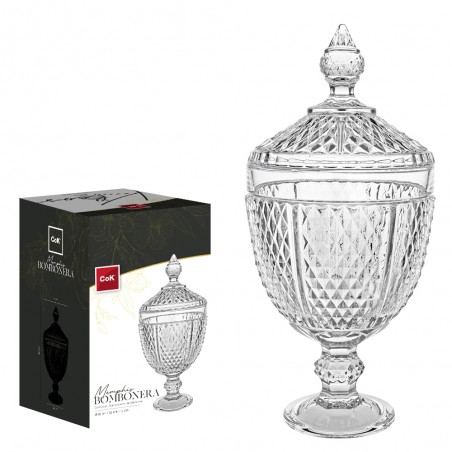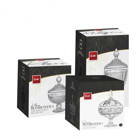 Una versátil bombonera de vidrio perfecta como regalo para ocasiones especiales gracias a su atractivo estuche de color