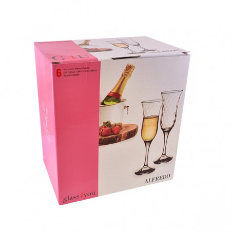 Este práctico juego de copas de champán viene en un llamativo pack de seis piezas perfecto para regalo.