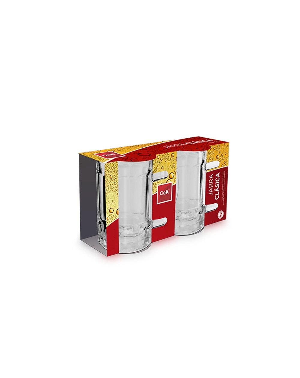 Este cómodo juego de jarras para cerveza viene en un práctico pack de dos piezas perfecto para regalo.