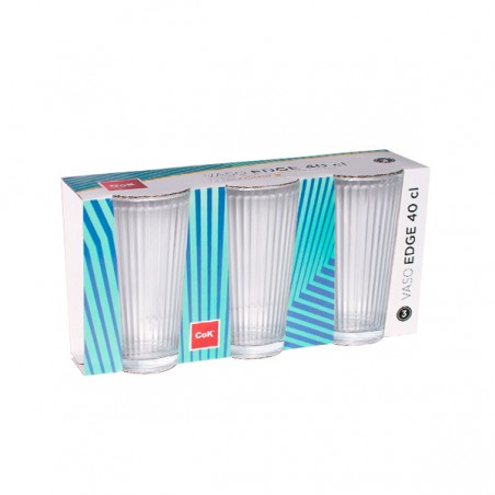 Este versátil juego de vasos para refresco viene en un práctico pack de tres piezas perfecto para regalo.