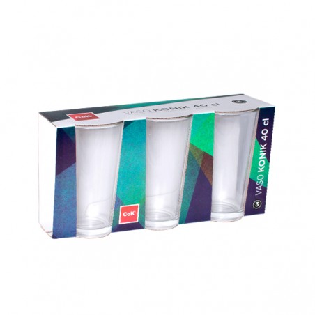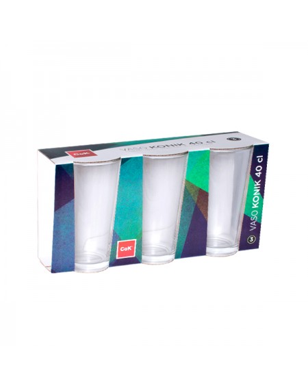 Este versátil juego de vasos para refresco viene en un práctico pack de tres piezas perfecto para regalo.