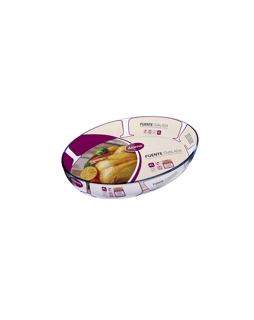 Las fuentes Alorno están fabricadas en vidrio borosilicato para resistir cambios de temperatura etremos. Gracias a las propiedades de este material, las piezas pueden pasar del horno al congelador sin romperse.