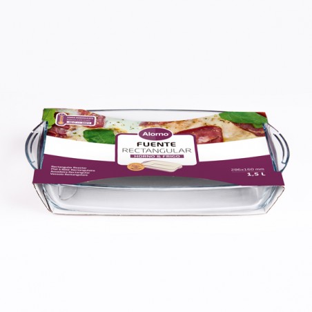 Las fuentes Alorno están fabricadas en vidrio borosilicato para resistir cambios de temperatura etremos. Gracias a las propiedades de este material, las piezas pueden pasar del horno al congelador sin romperse.