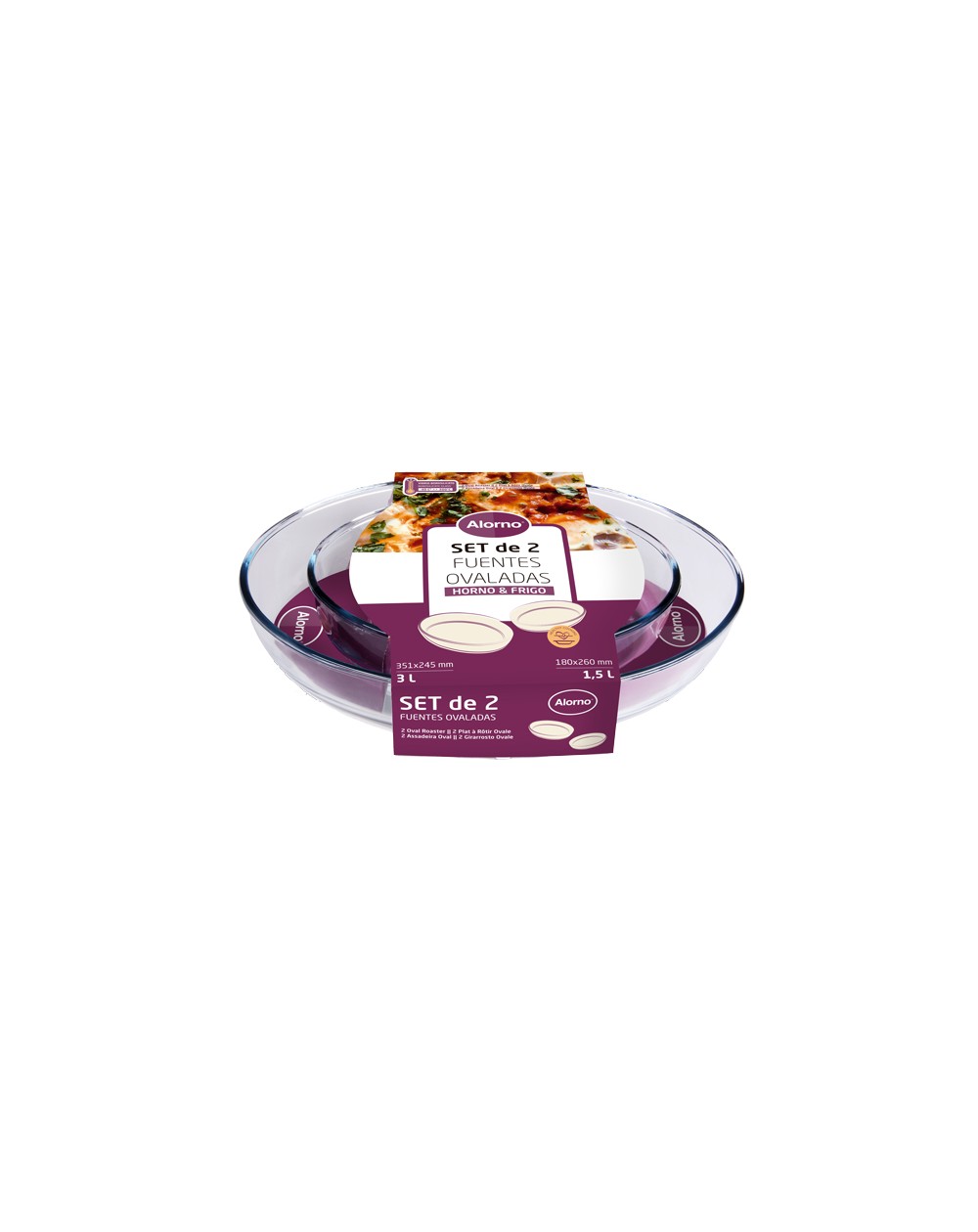 Las fuentes Alorno están fabricadas en vidrio borosilicato para resistir cambios de temperatura etremos. Gracias a las propiedades de este material, las piezas pueden pasar del horno al congelador sin romperse.