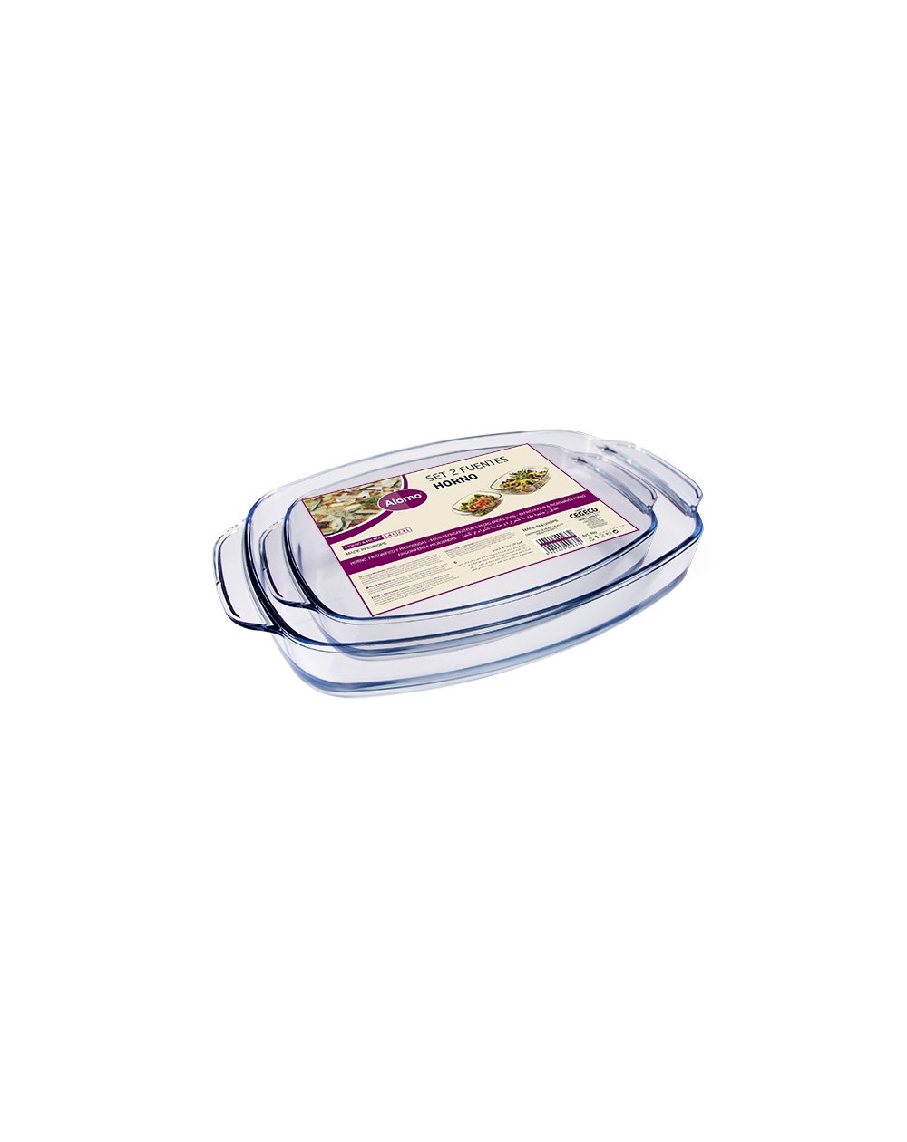 Las fuentes Alorno están fabricadas en vidrio borosilicato para resistir cambios de temperatura etremos. Gracias a las propiedades de este material, las piezas pueden pasar del horno al congelador sin romperse.