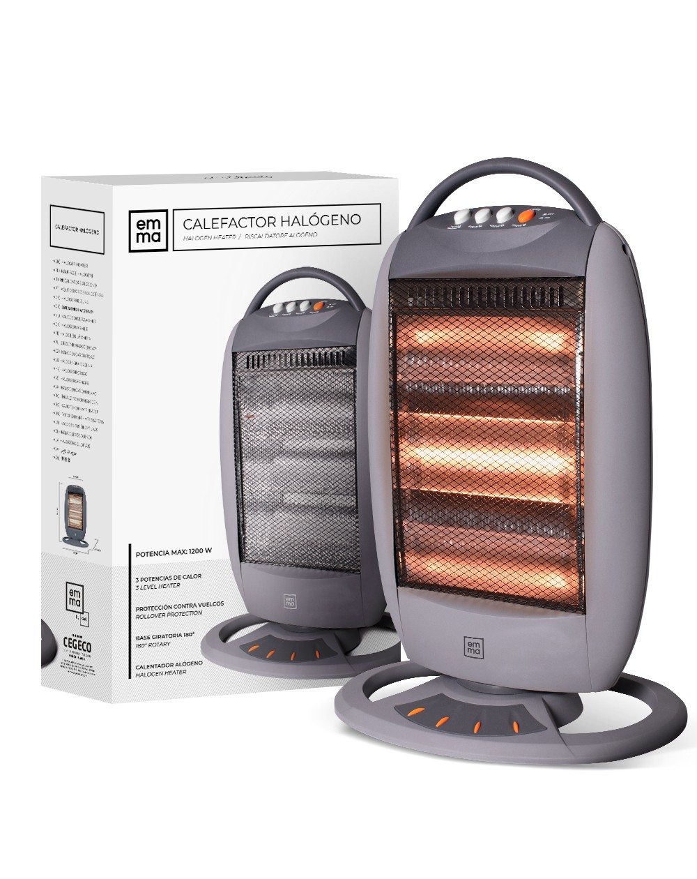 Emma Calefactor Halogeno Gris 1200W 40x58cm GB1K8