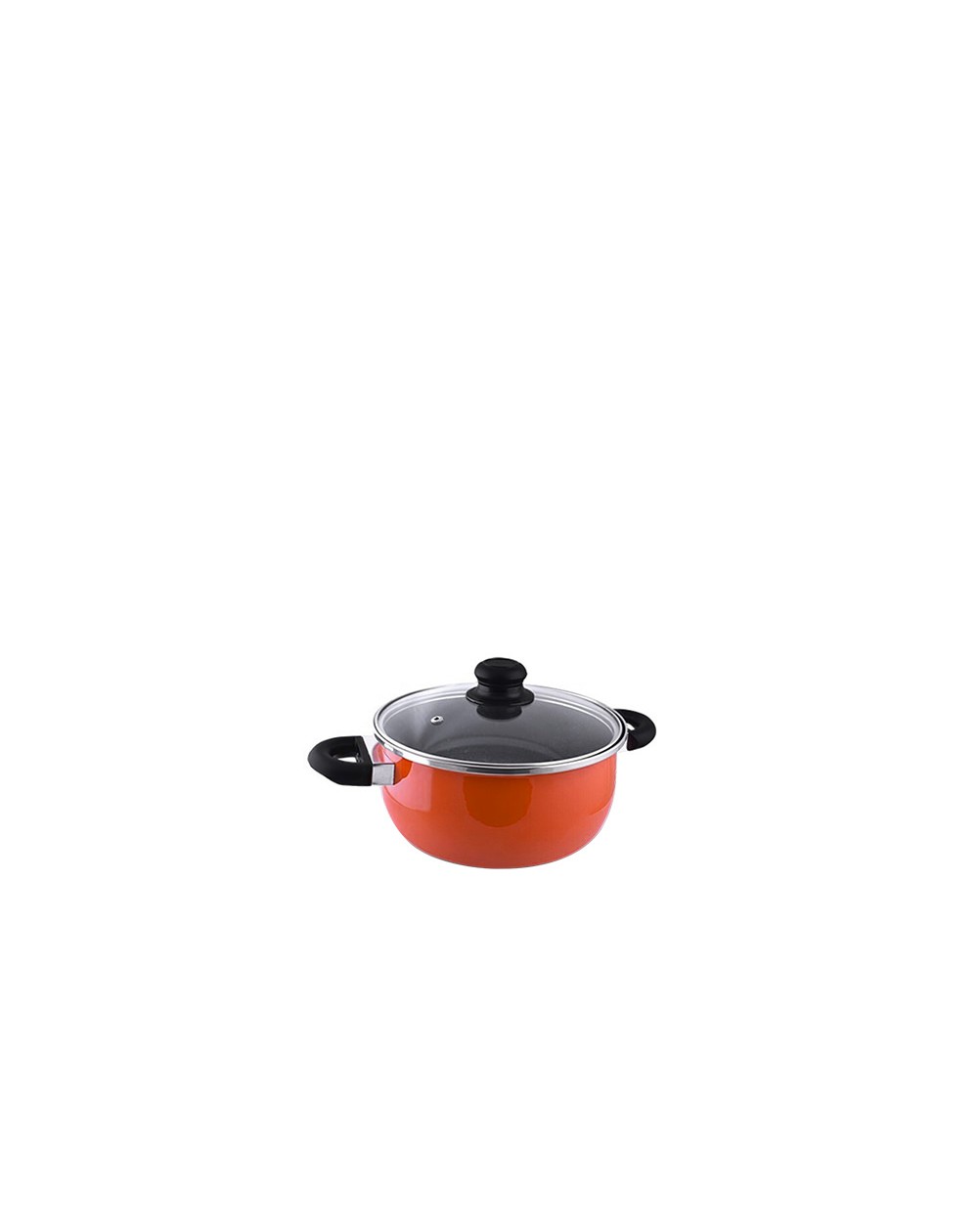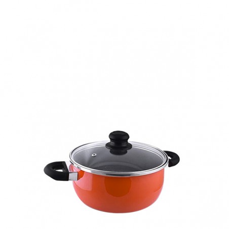 La cacerola de acero esmaltado más económica y tradicional, con doble capa antiadherente sin PFOA, mango de bakelita y tapa de cristal.