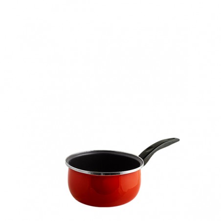 El cazo de acero esmaltado más económico y tradicional, con doble capa antiadherente sin PFOA y mango de bakelita.