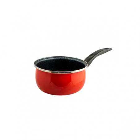 El cazo de acero esmaltado más económico y tradicional, con doble capa antiadherente sin PFOA y mango de bakelita.