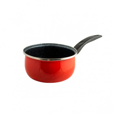 El cazo de acero esmaltado más económico y tradicional, con doble capa antiadherente sin PFOA y mango de bakelita.
