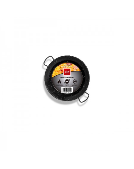 La paellera de acero esmaltado de toda la vida, apta para fuegos de gas y disponible en multitud de tamaños.