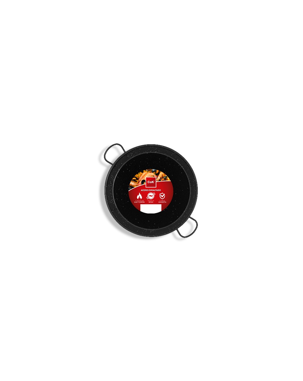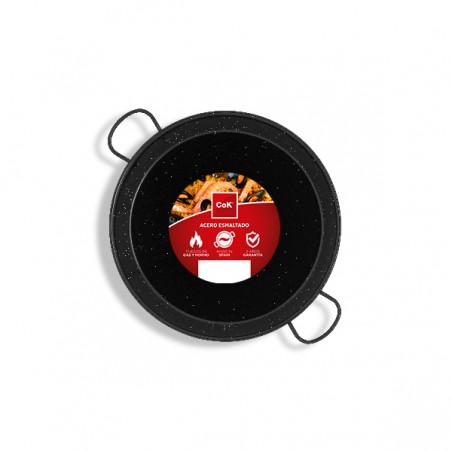 La paellera de acero esmaltado de toda la vida, apta para fuegos de gas y disponible en multitud de tamaños.