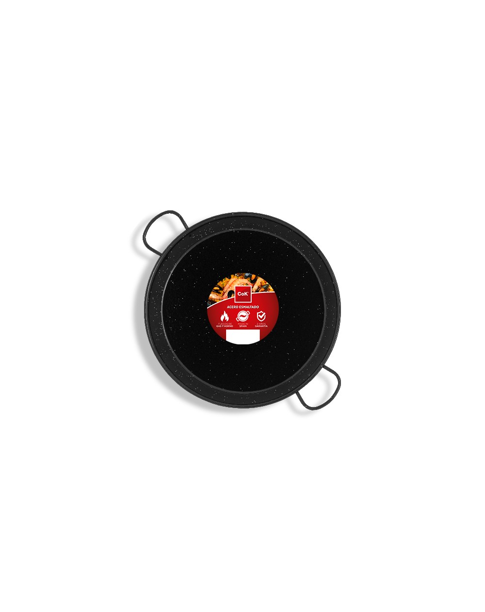 La paellera de acero esmaltado de toda la vida, apta para fuegos de gas y disponible en multitud de tamaños.