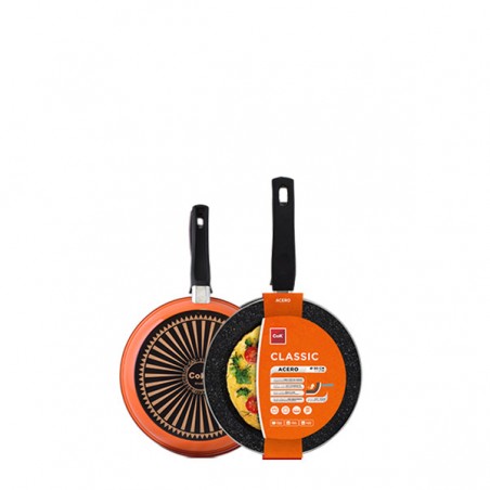 La sartén de acero esmaltado más económica y tradicional, con doble capa antiadherente sin PFOA y mango de bakelita.