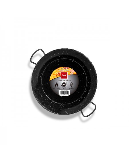 La sartén de acero esmaltado más económica y tradicional, con doble capa antiadherente sin PFOA y mango de bakelita.