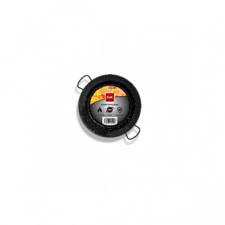 La sartén honda de acero esmaltado de toda la vida, apta para fuegos de gas y disponible en multitud de tamaños.