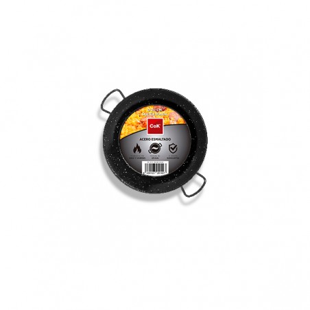 La sartén honda de acero esmaltado de toda la vida, apta para fuegos de gas y disponible en multitud de tamaños.
