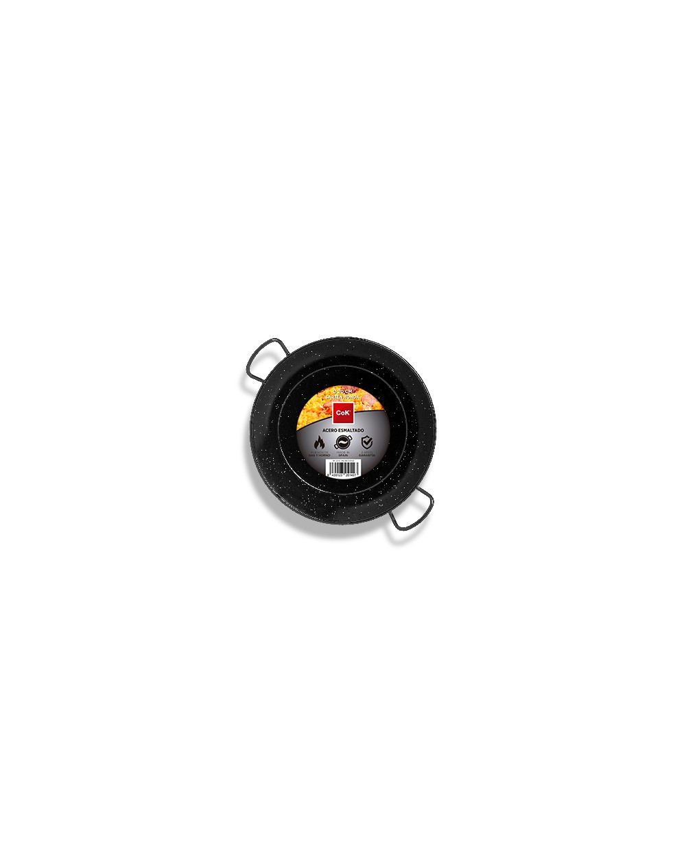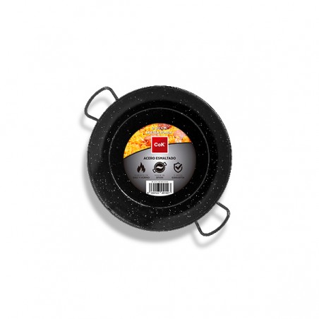 La sartén honda de acero esmaltado de toda la vida, apta para fuegos de gas y disponible en multitud de tamaños.