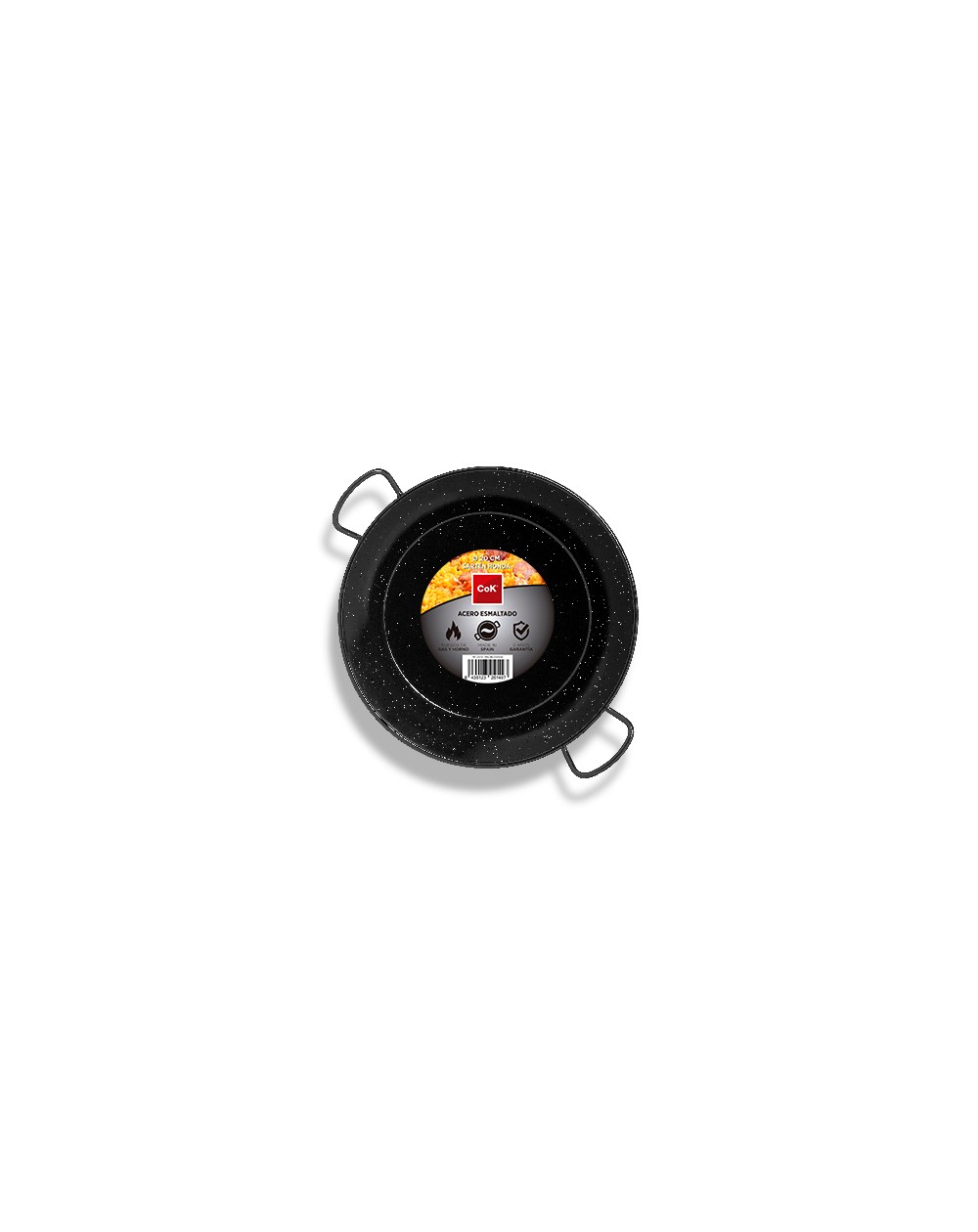 La sartén honda de acero esmaltado de toda la vida, apta para fuegos de gas y disponible en multitud de tamaños.