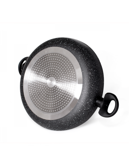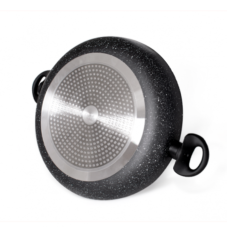 La sartén de aluminio más robusta y duradera, con 3 milímetros de espesor, triple capa antiadherente sin PFOA, base de inducción pintada y mango soft touch.