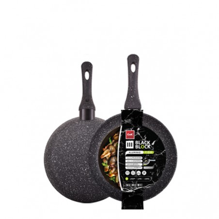 La sartén de aluminio más robusta y duradera, con 4 milimetros de espesor, triple capa antiadherente sin PFOA, base de inducción pintada y mango soft touch.