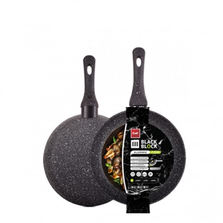 La sartén de aluminio más robusta y duradera, con 4 milimetros de espesor, triple capa antiadherente sin PFOA, base de inducción pintada y mango soft touch.