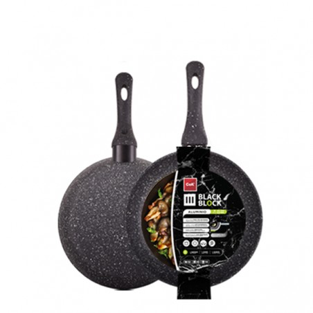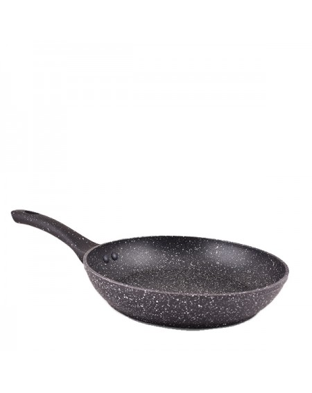 La sartén de aluminio más robusta y duradera, con 4 milimetros de espesor, triple capa antiadherente sin PFOA, base de inducción pintada y mango soft touch.