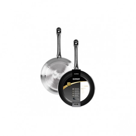 La mejor sartén de aluminio profesional, con triple capa antiadherente sin PFOA, base de inducción y mango de acero inoxidable unido mediante remaches.