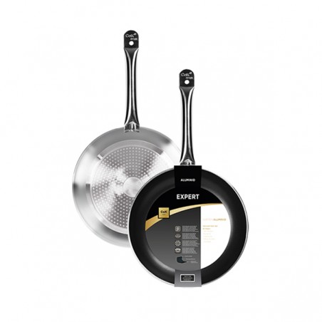 La mejor sartén de aluminio profesional, con triple capa antiadherente sin PFOA, base de inducción y mango de acero inoxidable unido mediante remaches.