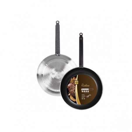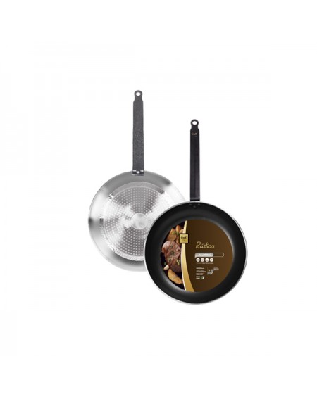 La mejor sartén de aluminio profesional, con triple capa antiadherente sin PFOA, base de inducción y mango rústico de hierro fundido unido mediante remaches.