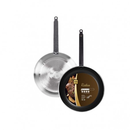 La mejor sartén de aluminio profesional, con triple capa antiadherente sin PFOA, base de inducción y mango rústico de hierro fundido unido mediante remaches.