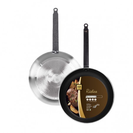 La mejor sartén de aluminio profesional, con triple capa antiadherente sin PFOA, base de inducción y mango rústico de hierro fundido unido mediante remaches.