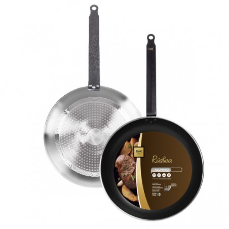 La mejor sartén de aluminio profesional, con triple capa antiadherente sin PFOA, base de inducción y mango rústico de hierro fundido unido mediante remaches.